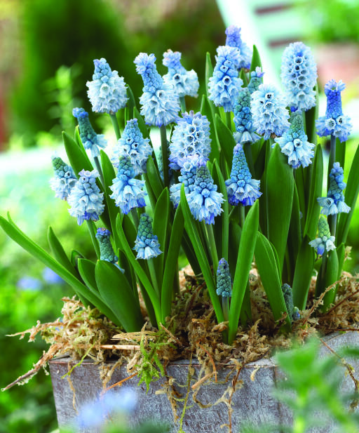 Denne letdyrkede og duftende perlehyacint vender gerne tilbage år efter år. De lyseblå blomster har en delikat, hvid kant og kan beundres tæt på. Ideel i urtepotter og bedets kanter og helt henrivende til borddækningsarrangementer.