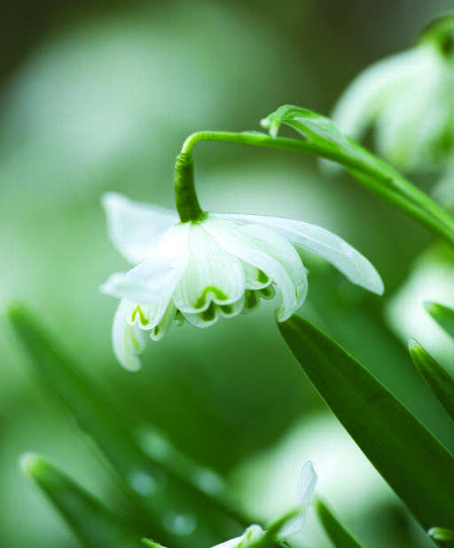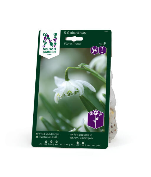 En fyldt vintergæk, hvis helhvide ydre bægerblade omslutter de indre, som alle har grønne spidser. Disse små krinolinelignende skønheder har tiltalt havedyrkere helt siden 1731. Anses for mindre appetitlig for rådyr, hare, kanin og mosegris.