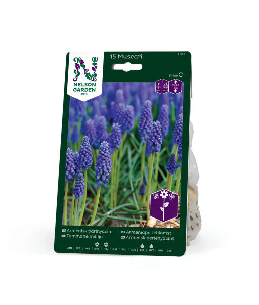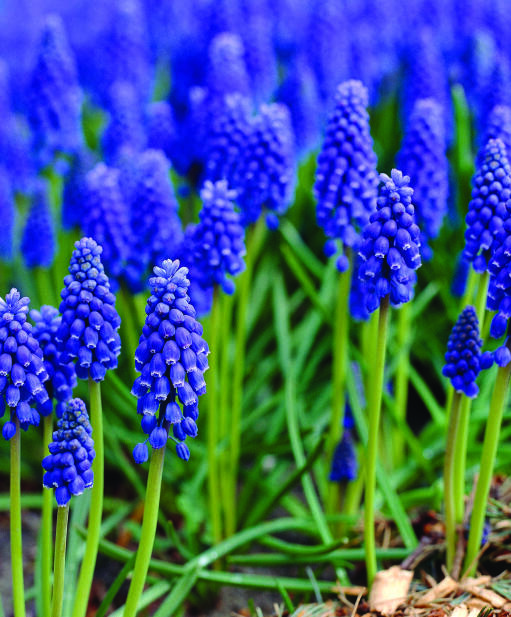 Armensk perlehyacint er en blåblomstrende skønhed, der ikke må mangle i forårshaven. Meget smuk i potte sammen med f.eks. hvide tulipaner fra gruppen Tidlige Fyldtblomstrende.
