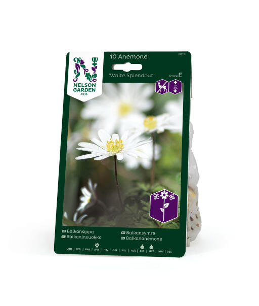 'White Splendour' har store, smukke hvide blomster med en svag lilla/rosa yderside. Balkananemone er en rigtig charmetrold, der i udseende minder om vores egen hvide anemone. Anses for mindre appetitlig for rådyr, hare, kanin og mosegris.