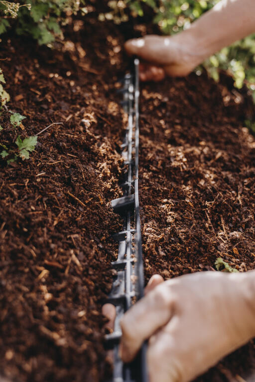 Denne barkstopper er ideel til plantebede på skråninger og holder effektivt barkflis på plads. Den er et innovativt alternativ til traditionelle materialer som sten og træstammer til at fastholde barkflis på skrånende områder. Hver pakke dækker ca. 1,5-2 m2. Begynd opsætningen på toppen af skråningen og fortsæt nedad. Når du har fyldt den med dit valgte dækmateriale, f.eks. barkflis, bliver kanten næsten usynlig og passer perfekt ind i landskabet.