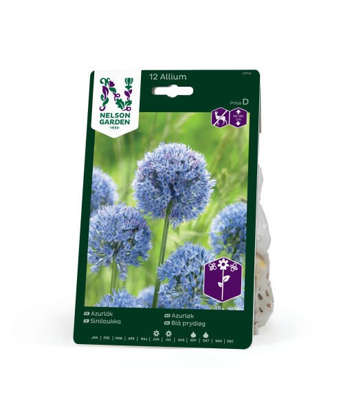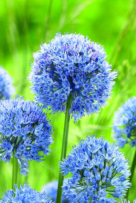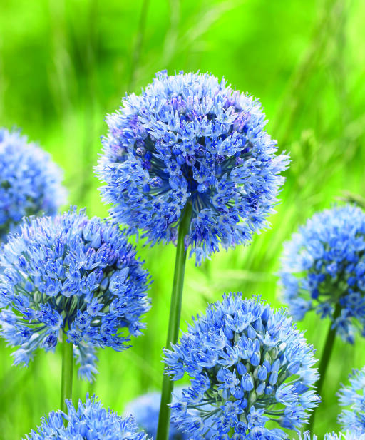 Blå prydløg har smukke, himmelblå blomsterkugler, der bliver knap 5 cm. Blå prydløg regnes for en af de bedste blåblomstrende arter og er smuk til snit og tørring. Anses for mindre appetitlig for rådyr, hare, kanin og mosegris.