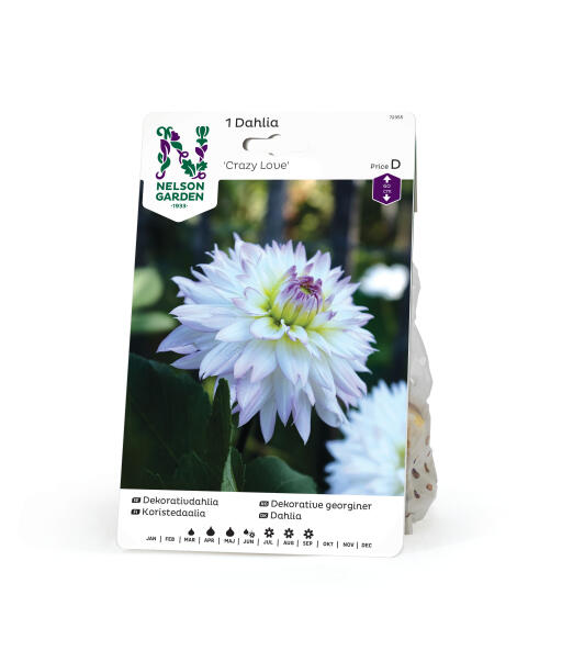 En særligt dyrkningsværdig dahlia med store, hvide blomster med islæt af glimtende lyserødt. Middelhøj, stabil voksemåde gør den perfekt i blandede bede sammen med stauder og sommerblomster. Også god i potte.