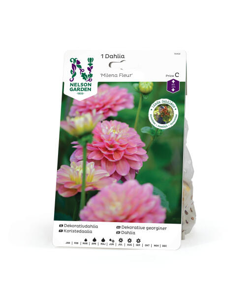 En dekorativ dahlia, som glimrer som om den var overstrøet med glitter. I romantiske nuancer fra lakserosa til lavendelblå passer den perfekt til hvide blomster, mørkebladede planter eller prydgræs. Blomstrer rigeligt og længe på stabile stilke.
