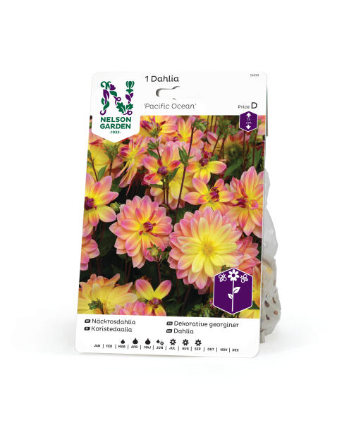 Denne dahlia danner en rigtig busk med et væld af blomster, ofte mere end 50 stk. samtidigt. Blomsterne har en livlig gul farve i midten og varmt orange-røde kanter. Velegnet til både potter og bede.