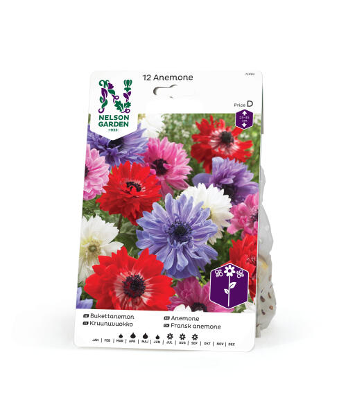 Halvfyldte anemoner i blandede farver, flotte sammen med andre sommerblomster i bedet - og til snit! Passer glimrende i bedet, men også i potter.