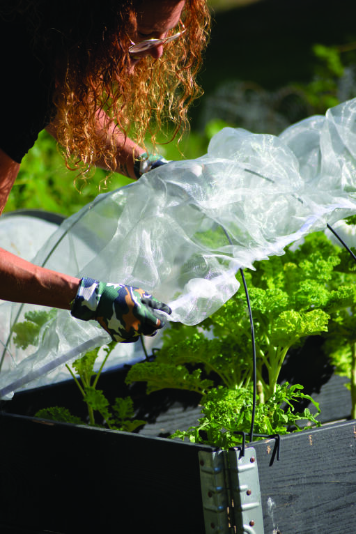 Red grønkålen fra uvelkomne gæster med et fleksibelt kålnet. Kålnettet har elastik og kan støttes ved hjælp af pallerammebuer. Kålnettet slipper vand og luft igennem, men holder skadedyr ude. Opsæt dit kålnet, så snart du planter dine planter ud, for at beskytte dem mod skadedyr.