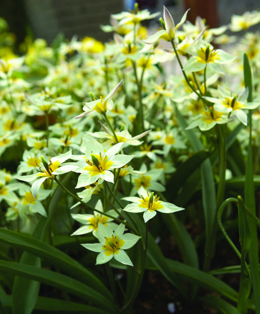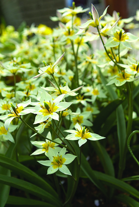 Kirgisisk tulipan blomstrer rigeligt og får ofte flere blomster på hver stængel. Blomsterne, der åbner sig til en hvid stjerne, er hvide på indersiden med gult centrum. Ydersiden af blomsterbladene er svagt gråviolette med gul basis.