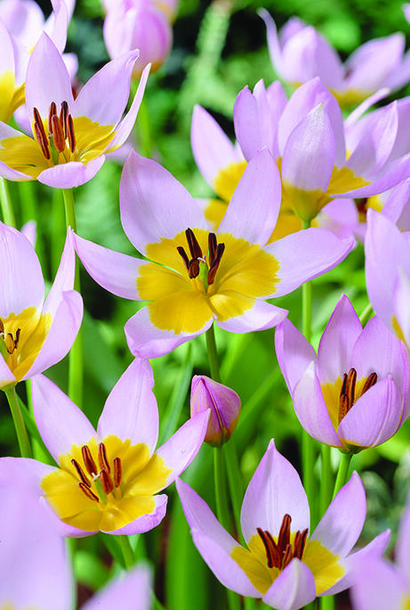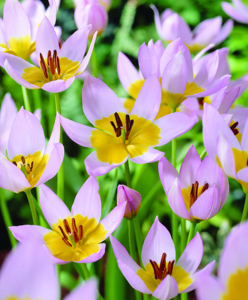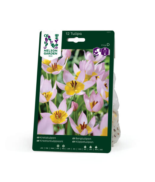 Hos klippetulipaner er blomsterne duftende, lyst rosalilla med gul basis og der sidder ofte flere sammen på én stilk.