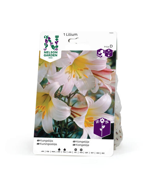 Kongeliljen - den sagnomspundne. I morgenkøligheden og om aftenen er luften fyldt af dens skønne duft. Kan dyrkes i hele landet. Meget velegnet i bede eller blandt buske. Alternativt kan liljerne med fordel dyrkes i potte.