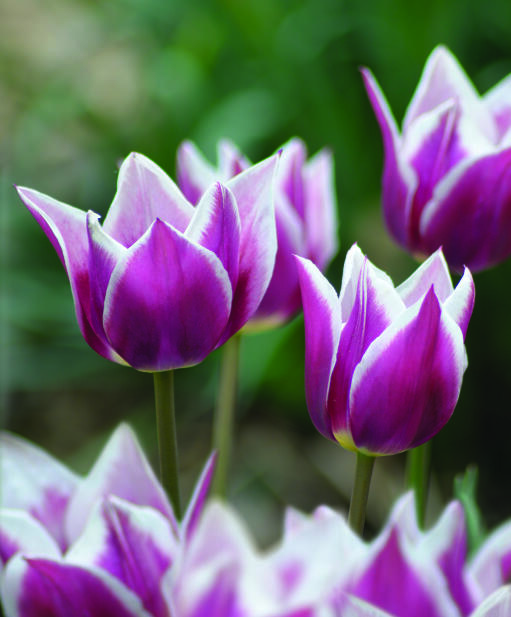 'Claudia' er en elegant og statelig liljeblomstrende tulipan på høj stilk. Med sine hvidkantede blomsterblade mod den rødlilla bund skiller den sig virkelig ud i bedet. Glimrende som snitblomst.