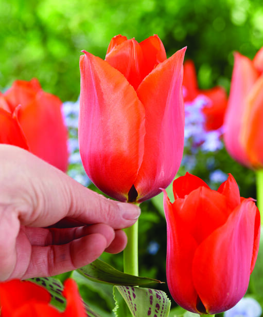 Tulipanen med den grandiost store blomst (op til 20 cm), en orangerød kæmpe på en stabil og kraftig stilk. En fremragende snitblomst selvfølgelig. Også de bregnegrønne blade er dekorative med deres kastanjefarvede mønster.