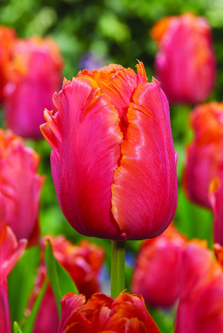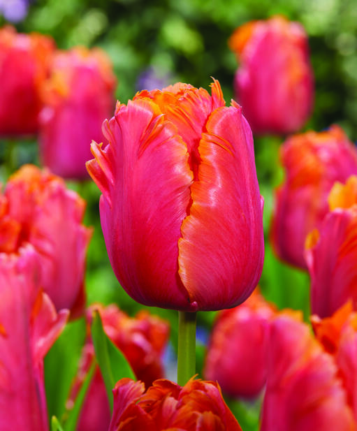 Ifølge den officielle beskrivelse af denne eksotiske tulipan har den hele ti nuancer, der spænder fra violet til gulorange og abrikosrosa. Ingen blomster ligner hinanden. Høj på robust stilk, bliver det et spektakulært indslag i bed og vase.