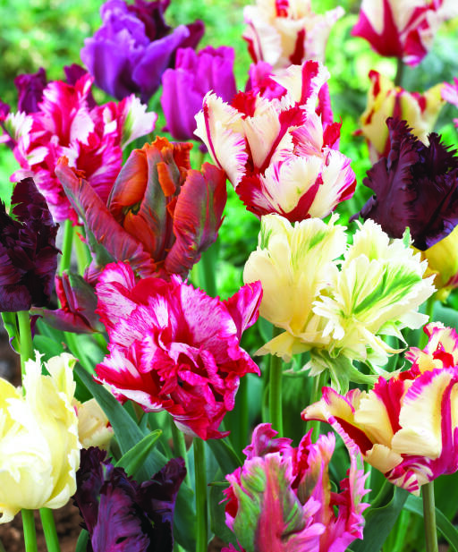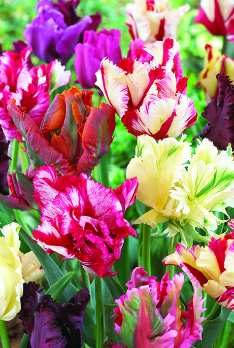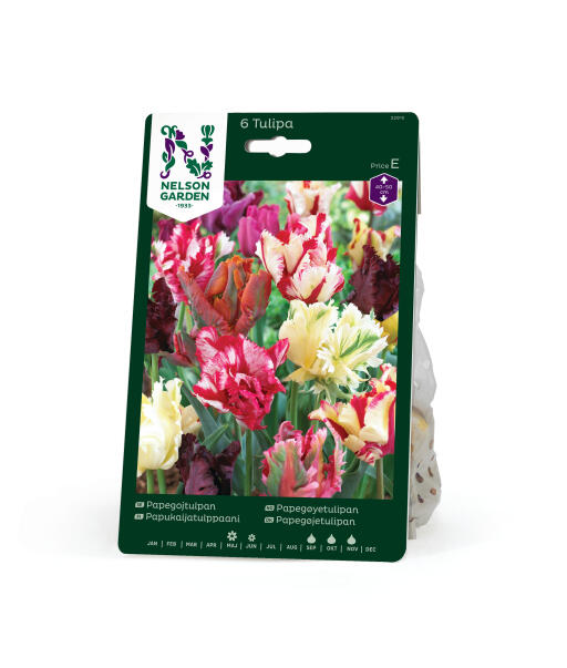 En herlig blanding af forskellige papegøjetulipaner. Sorterne er sentblomstrende og i mange lækre farver. Gruppens primære kendetegn er de store blomster med eksotiske fjerlignende blomsterblade. Særdeles god som snitblomst.