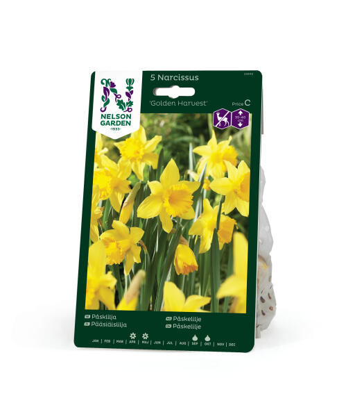 'Golden Harvest' er en påskelilje, der hører til gruppen Enkeltblomstrende. Den har store, smukt gyldne blomster og passer glimrende i bede, blandt buske og under træer. Anses for mindre appetitlig for rådyr, hare, kanin og mosegris.