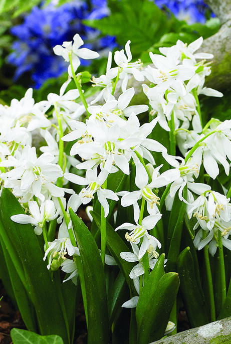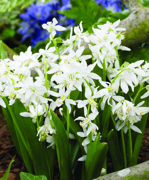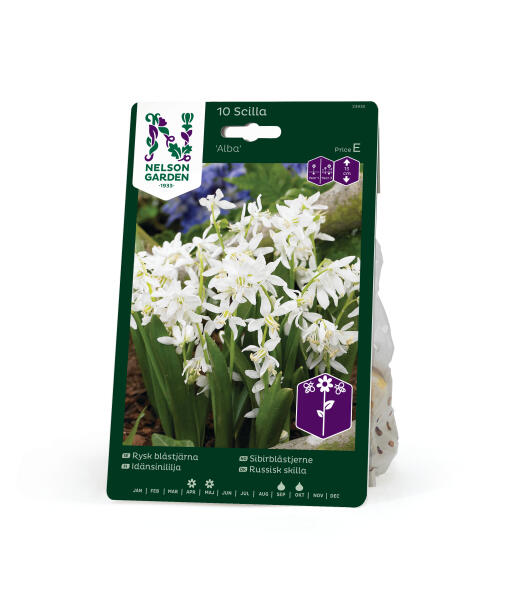 En virkelig sød, hvid sort af skilla. Passer glimrende til forvildning under træer og buske. Fin sammen med forårsblomster i andre farver, f.eks. perlehyacinter.