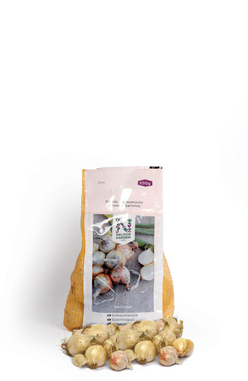 Sætteløg. Et unikt hvidt skalotteløg fra Frankrig. Meget smagsrigt. Så mildt, at det passer råt i salat, men også lækker som ovnristet eller grillet. Hvert plantet løg deler sig til et knippe med ca. 5-8 nye løg.