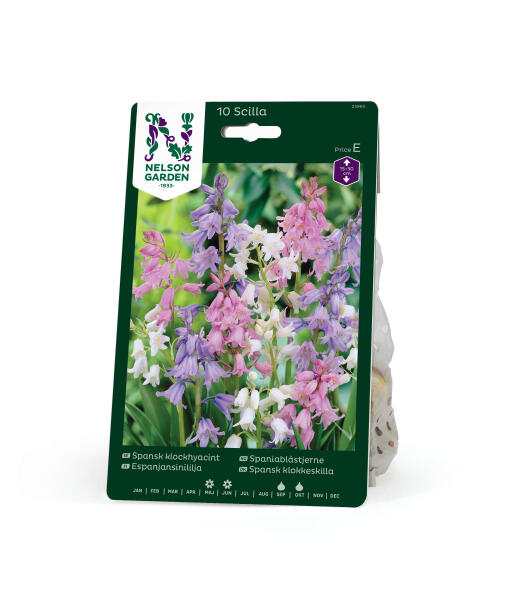 Blandingen indeholder spansk klokkeskilla med hvide, blå og rosa blomster. De smukke, klokkelignende blomster sidder omkring en lodret stængel. Smuk plantet i grupper i tyndt græs og på engarealer, gerne sammen med forskellige stauder.