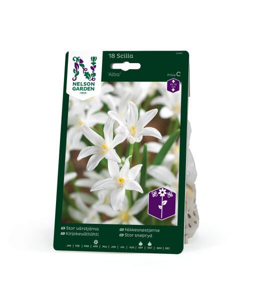 Stor snepryd med sine smukke hvide blomster stråler virkelig som en diamant i forårssolen. Samplant evt. med porcelænshyacint og skilla for at skabe blomstertæpper i skiftende blå nuancer.