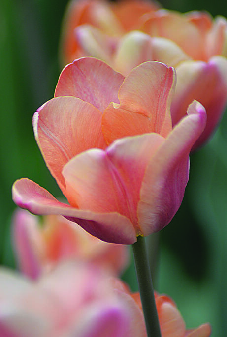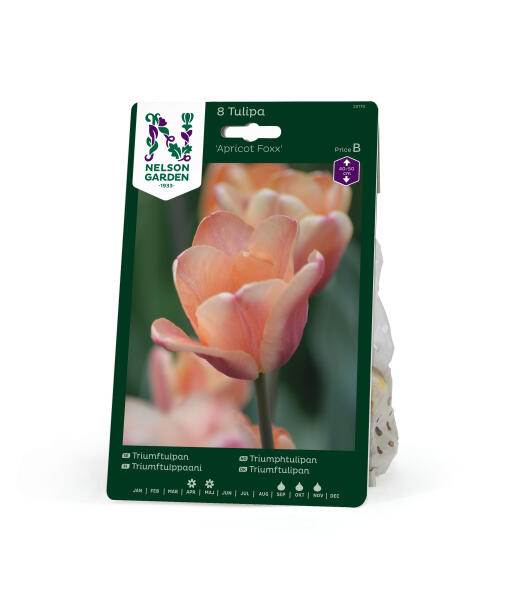 En lækker abrikosfarvet tulipan med indslag af rosa. Farver, der intensiveres, når blomsten modner, men som også kan intensiveres eller dæmpes, afhængigt af om foråret er køligt eller varmt. Fantastisk i kombination med mørke tulipaner.