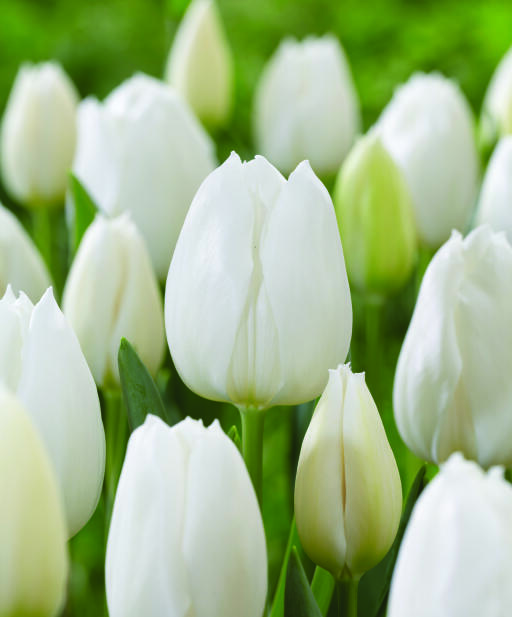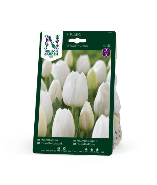 'White Marvel' er en stram og elegant tulipan med cremehvide blomster på stive, stabile stilke. Blomsterne plejer at stå længe. Særdeles god som snitblomst.