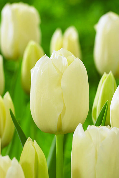 En statelig tulipan, som hæver sig over bedet og blomstrer længe. Fremavlet for sin elegance og sin holdbarhed som snitblomst. De elfenbenshvide kronblade har en fjerlet aftegning i gult, som blegner med tiden.