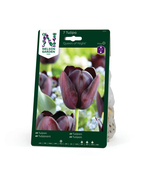 'Queen of Night' er en af de mørkeste af alle tulipaner. Den har en silkeglinsende blomst i mørk kastanjebrun, næsten sort. Blomsterne er holdbare. Sorten er gammel, udviklet før 1944 i Nederlandene. Særdeles god som snitblomst.