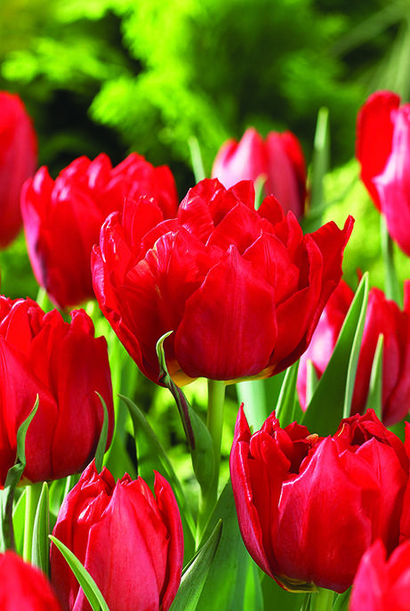 Glødende rød på ydersiden med fine fjerlignende gule striber fra bunden og op. Denne tidlige dobbeltblomstrende skønhed er begavet med duft og muligheden for at plante i både krukke og bed - er god som snitblomst!