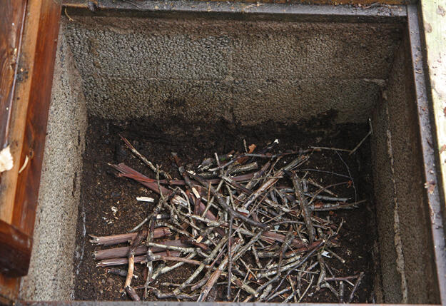 1. Begynd med at lægge kviste i bunden af beholderen for at muliggøre lufttilførsel nedefra. Når komposten derefter blandes med strøelse, lægges først de forskellige materialer skiftevis i tynde lag, tænk på lasagne... Når indholdet i beholderen begynder at fylde lidt mere, blandes det forsigtigt ved hjælp af f.eks. en greb. Blandingen og kvistene i bunden giver komposten ilt og påskynder nedbrydningsprocessen.