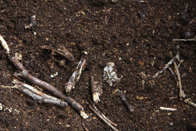 2. Hvis du har adgang til gammel kompostjord, strør du nogle spandfulde af dette ud oven på kvistene. Den gamle kompost myldrer af mikroliv og giver en lynstart på nedbrydningen af det nye materiale, som du tilsætter. Orme er dygtige nedbrydere, så tilfør gerne sådan nogle for at få endnu finere jord.